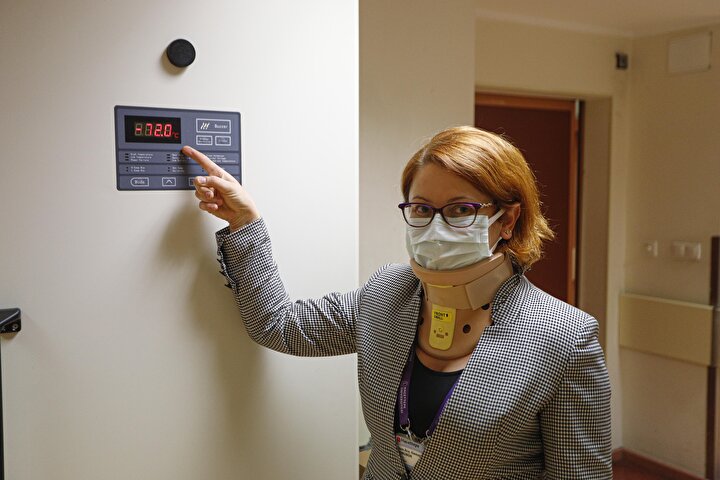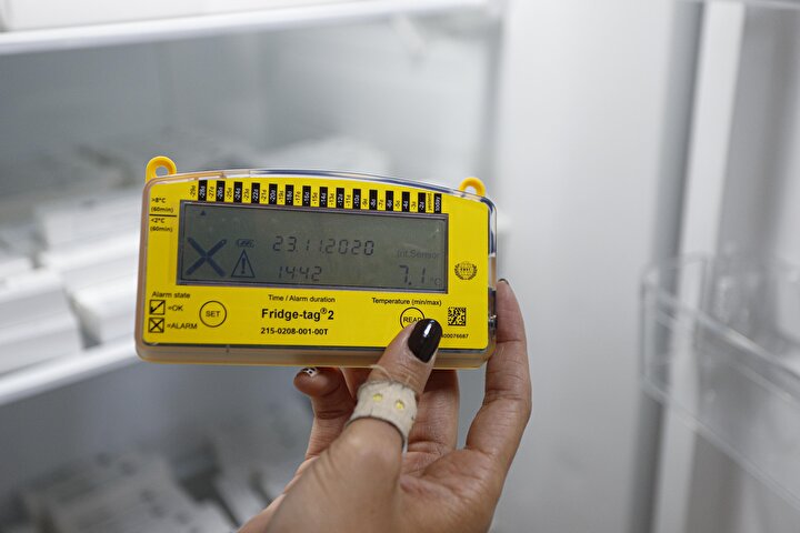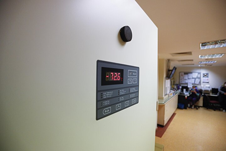 Kimsenin ulaşmasını istemiyoruz, bu yüzden kilitli. Kontrollü bir ulaşım istiyoruz aşılarımızın güvenliği açısından. Eksi 70-80 derecenin bozulmaması, dolabın kapağının açılmaması için kilitliyoruz" diye konuştu.