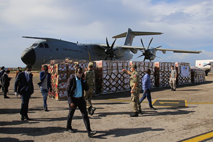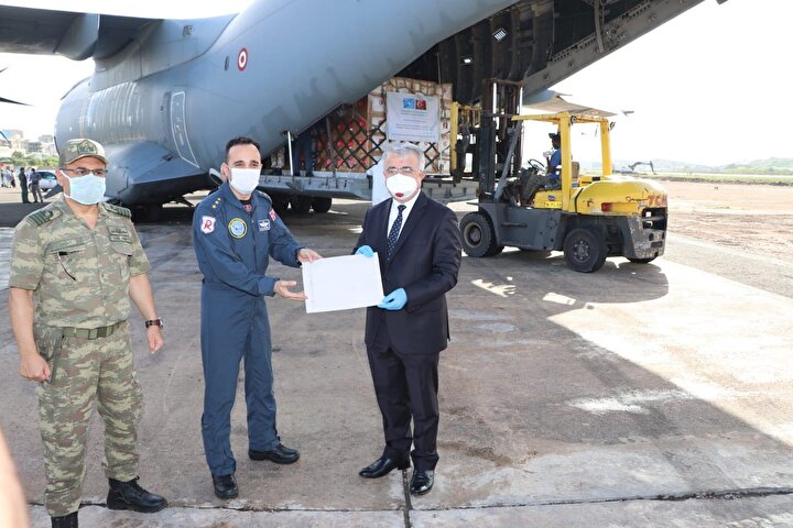 Cumhurbaşkanı Recep Tayyip Erdoğan'ın talimatı üzerine Milli Savunma, Sağlık, Sanayi ve Teknoloji bakanlıklarınca hazırlanan malzemeler, Somaliye ulaştı. Dün gece Etimesgut Askeri Havaalanı'nda A 400M tipi nakliye uçağında, ilk etapta 5 bin adet üretilen yerli yoğun bakım solunum cihazından 10 adet, tanı kiti, tulum ve maske gibi çok sayıda önleyici sağlık malzemesi yer aldı. Böylece bakanlığın koordinasyonunda 14 günde seri üretimine başlanan yerli yoğun bakım solunum cihazının gönderildiği ilk yabancı ülke, hiç solunum cihazının olmadığı öğrenilen Somali oldu.