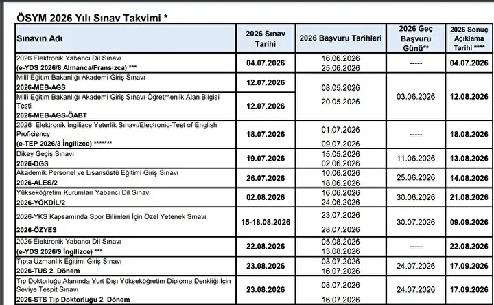 Ölçme, Seçme ve Yerleştirme Merkezi (ÖSYM) Başkanı Bayram Ali Ersoy, 2026 yılı ÖSYM sınav takvimini duyurdu. 2026 yılı Akademi Giriş Sınavı (AGS) ve Öğretmenlik Alan Bilgisi Testi (ÖABT) tarihleri belli oldu. İşte iki oturum şeklinde yapılacak MEB AGS ÖABT sınavı için başvuru, sınav ve sonuç tarihleri.
