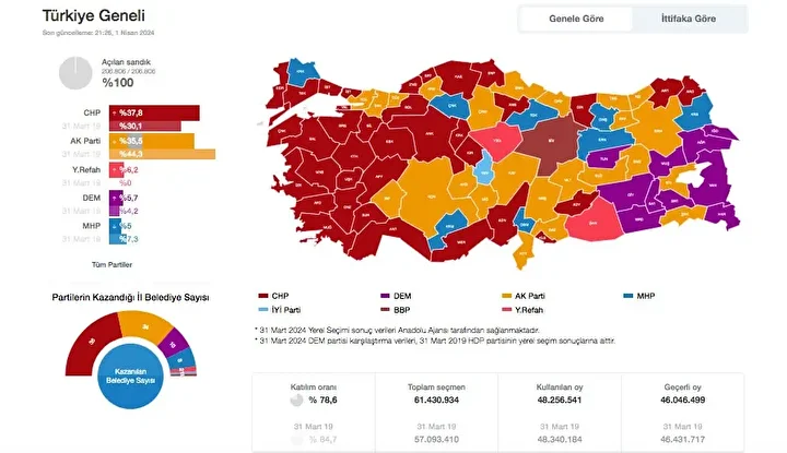 Türkiye Yerel Seçim Sonuçları 31 Mart 2024