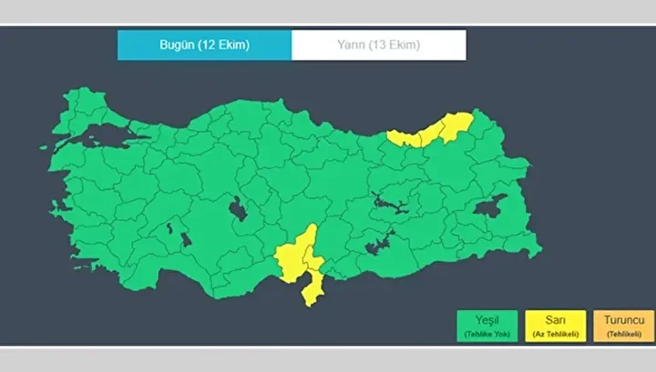 Meteoroloji'nin sarı kodla uyardığı 6 il ise şöyle: