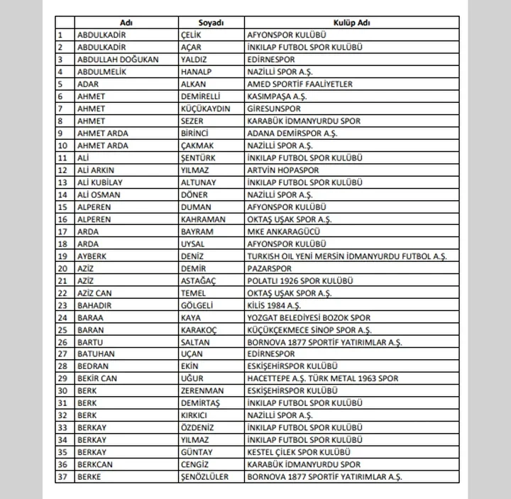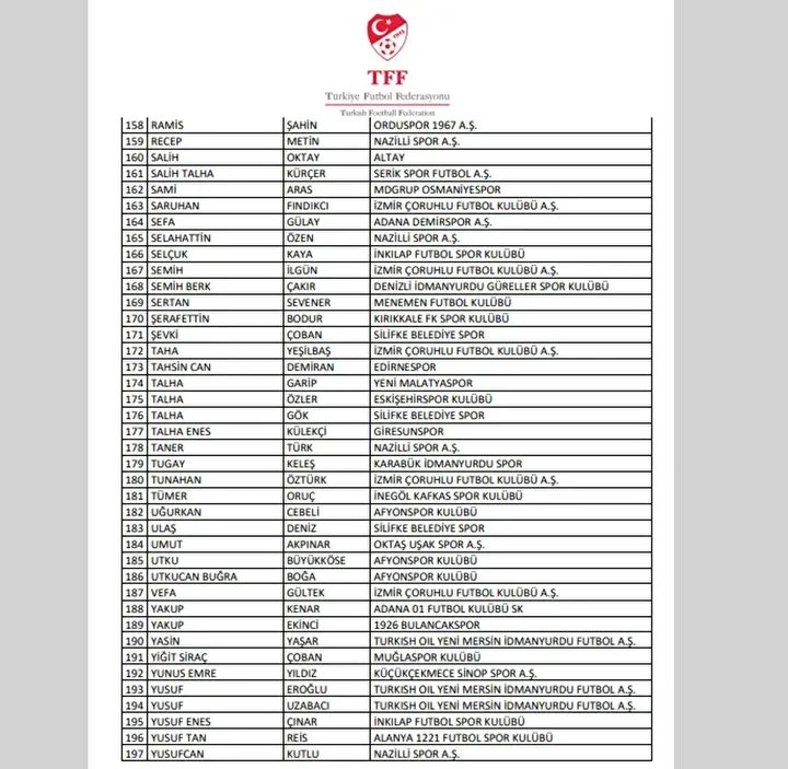 TFF'den bahis soruşturması: Futbol Disiplin Kurulu'na (PFDK) sevk edilen 197 futbolcu kim?