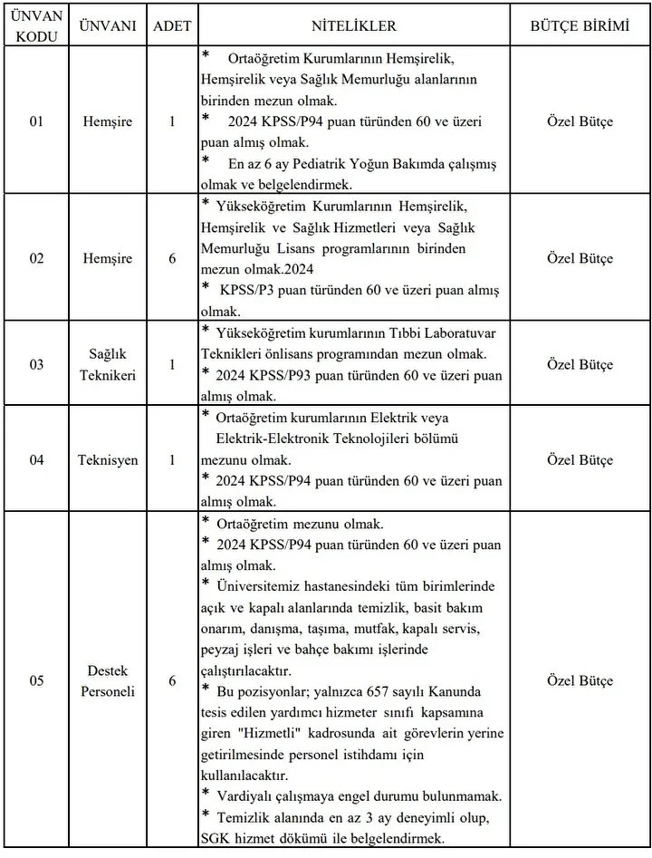 1- Tercih edilecek pozisyonun karşısında yer alan şartları taşıyor olmak.
