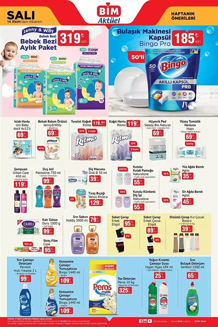 BİM rafları bu hafta dolup taşıyor. 14-17 Ekim tarihleri arasında satışa sunulacak yeni aktüel ürünler arasında ev gereçlerinden gıdaya, bebek bakımından kahve çeşitlerine kadar pek çok fırsat yer alıyor. Peki bu hafta BİM kataloğunda hangi ürünler var? İşte 14-17 Ekim BİM aktüel kataloğu ve fiyat listesi...