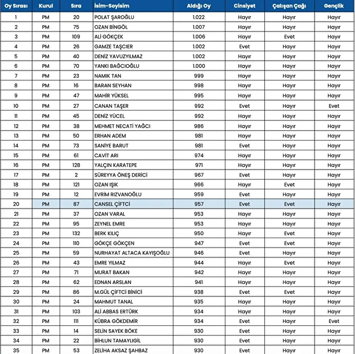 Özgür Özel’in, Parti Meclisi seçimi için sunduğu anahtar liste şekillenmeye başladı. Mevcut Parti Meclisi’ndeki 49 ismin yeri korurken, listede 31 yeni isim yer aldı.İşte o liste: