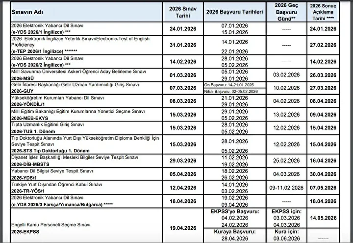 Engelli Kamu Personeli Seçme Sınavı ise 19 Nisan 2026’da yapılacak.