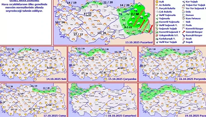 Meteoroloji Genel Müdürlüğü tarafından yapılan tahminlere göre: Ülkemiz kuzey ve doğu kesimleri parçalı ve çok bulutlu, Batı Karadeniz kıyıları, Doğu Anadolu'nun doğusu ile Rize, Artvin, Batman çevreleri ile Siirt'in kuzeyi VE Trabzon iç kesimlerinin yağışlı geçeceği tahmin ediliyor.