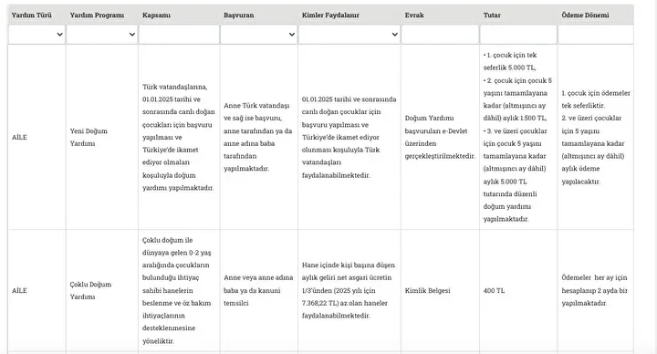 Aile ve Sosyal Hizmetler Bakanı Mahinur Özdemir Göktaş, yazılı açıklamasında, 2025 Aile Yılı kapsamında doğum yardımı miktarının güncellendiğini, 1 Ocak itibarıyla doğan ilk çocuğa 5 bin liralık tek seferlik, ikinci çocuğa aylık 1500 lira, üç ve sonraki çocuklar için aylık 5 bin lira destek verildiğini kaydetti.
