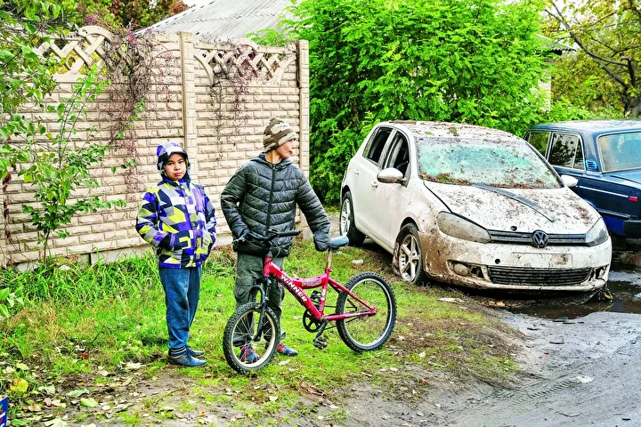 Bisikletler çocukluk anılarımızın vazgeçilmez unsurlarındandır. Onda ilk özgürlüğü ve kendine güveni tadarız. Ukrayna’nın Sloviansk kentinde bir gece saldırısı sonrası, özel alana düşen bir Geran2 drone parçaladığı evlerin önünde çocuklar yaşadıkları şok karşısında bisikletlerine sığınmışlar. Yıkımın ortasında kalan araçlar ve binalar, savaşın sivillere bıraktığı izlerin yalnızca en görünür olanı. (AA/Jose Colon)