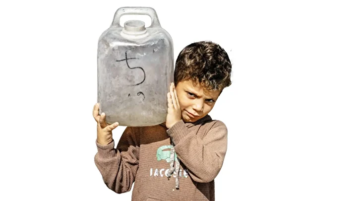 Gazze’deki Bureyj Mülteci Kampı’nda su arayışındaki bir Filistinli çocuk boş plastik bidonuyla yürüyor. Eğitim, oyun, çocuk haklarından uzak, dünyanın suçluluk sessizliğinde sadece bir damla su için minik bedenler büyüyor. Bu yükün utancı ise dünyanın üzerinde. (AA/Moiz Salhi)