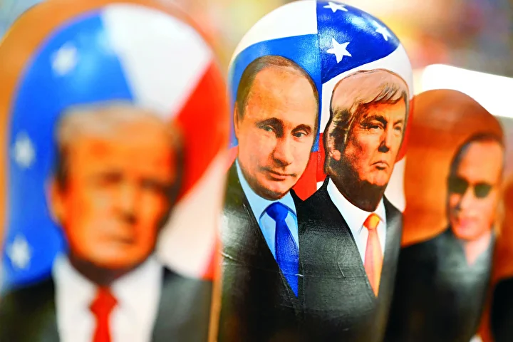Rusya’nın başkenti Moskova’da Arbat Caddesi’ndeki hediyelik eşya mağazasında, Vladimir Putin ile Donald Trump figürlü matruşkalar sıraya dizilmiş sergileniyor. Tahta figürler, hafta içi yapılan “Ukrayna zirvesi için kesin takvim yok” açıklamasıyla jeopolitikte içiçe geçmiş hamlelerden oluşan oyunu bize anlatıyor. (Olesya Kurpyayeva / AFP)