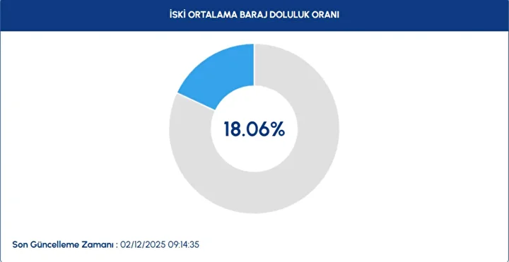 İSKİ’nin paylaştığı 3 Aralık 2025 güncel verilerine göre İstanbul’un toplam baraj doluluk oranı: %18,06