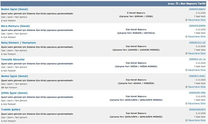 Türkiye İş Kurumu (İŞKUR), iş arayan vatandaşlara sunduğu e-şube platformu üzerinden sürekli güncellenen açık iş ilanlarıyla istihdamı teşvik eden önemli bir kamu kurumu olarak faaliyet gösteriyor. Özellikle Aralık 2025 itibarıyla, İŞKUR'un açık iş ilanları listesinde temizlik görevlisi, güvenlik görevlisi, şoför, büro personeli ve üretim elemanı gibi pozisyonlar için binlerce fırsat yer alıyor. Kamu kurumlarının yanında özel şirketler de binlerce personel alımı için iş ilanına çıktı. İŞKUR e-şube’ye (esube.iskur.gov.tr) üye olarak filtreleme yapabilir, ilanlara online başvurabilir ve kariyerinizi güçlendirebilirsiniz; en az lise mezunu adaylar için bu platform, Türkiye genelinde 81 ilde yeni kapılar aralıyor.