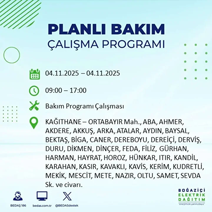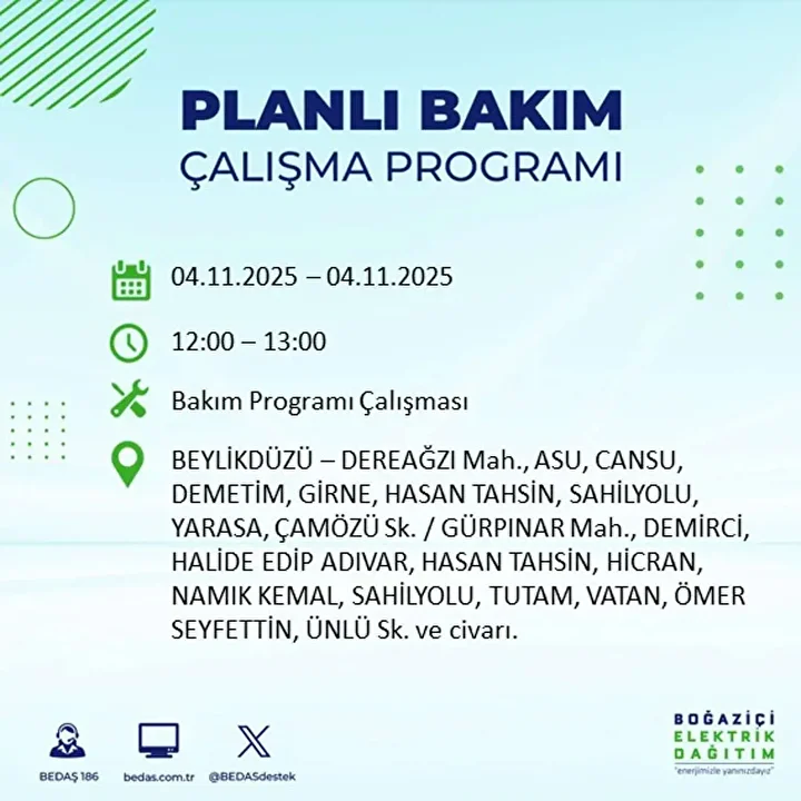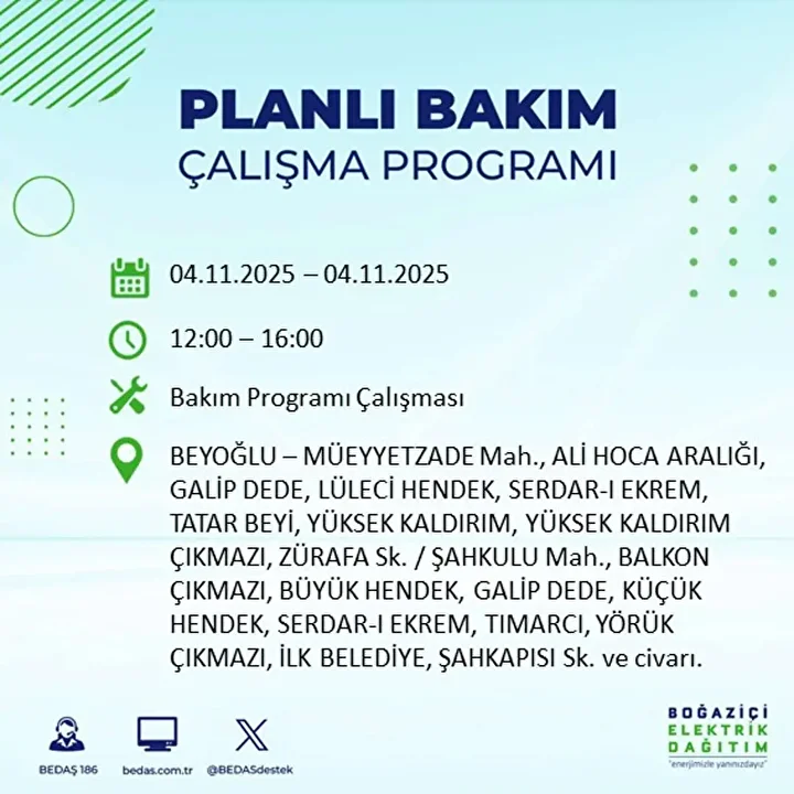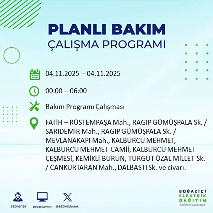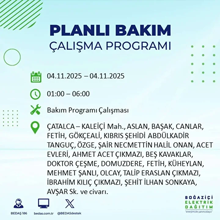 İSTANBUL ELEKTRİK KESİNTİSİ PROGRAMI (4 KASIM 2025)