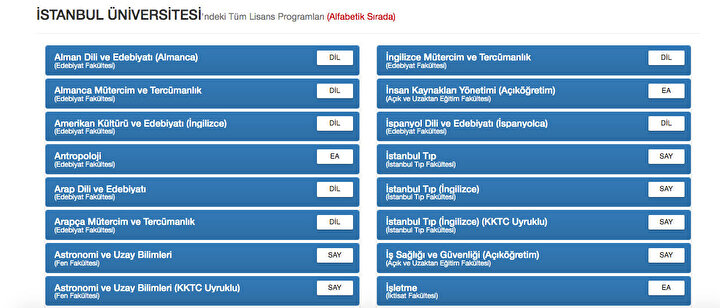 İSTANBUL ÜNİVERSİTESİ AUZEF BÖLÜMLERİ (2 YILLIK)