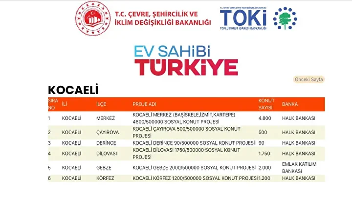 Kocaeli’de TOKİ 500 bin sosyal konut projesi hangi ilçelerde olacak?