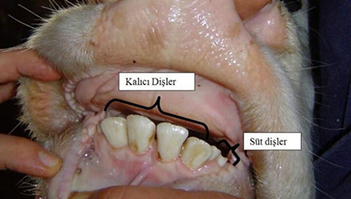 Sığırlarda üst çenede 12 azı diş vardır, kesici diş bulunmaz. Sığırlarda alt çenede 12 azı diş ve 8 kesici diş olmak üzere toplam 20 diş vardır. Sığırların alt çenede bulunan kesici dişlerinin durumu incelenerek yaş tayini yapılabilir. Sığırlarda dişlere göre yaş tayini kesici süt dişlerinin yerine kesici kalıcı dişlerin alması ve aşınma süreleri dikkate alınarak yapılır.