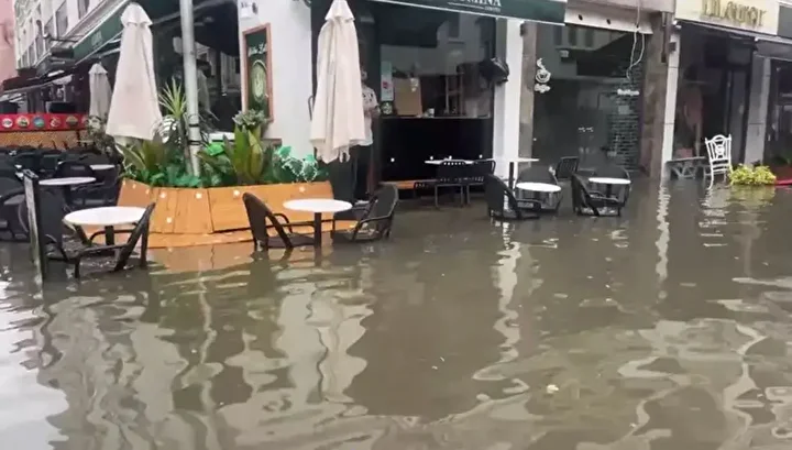 Su baskınının en yoğun yaşandığı bölgede bir kafede masa ve sandalyeler suya gömülürken, pastanelerdeki ürünler de tamamen kullanılamaz hale geldi. Bazı vatandaşlar çareyi masaların ve dolapların üzerine çıkarak beklemekte buldu.