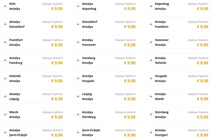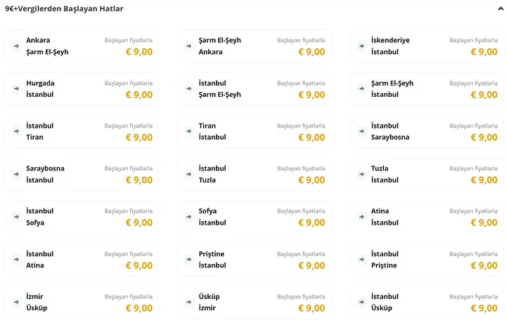 Pegasus tarafından başlatılan kampanyada biletlerin 9 euro artı vergilerden başlayan fiyatlarla satışa sunulduğu açıklandı.
