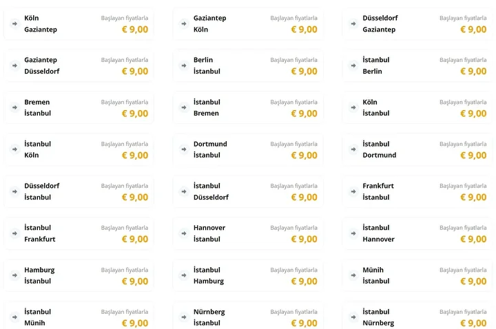 Pegasus 7-8 Ekim 2025 tarihlerinde geçerli olacak kampanya kapsamında belirli rotaları 9 euro artı vergilerden başlayan fiyatlarla satışa çıkardı. Yolcular, 26 Ekim 2025-28 Mart 2026 tarihleri arasında seyahat edecek.