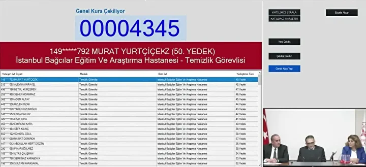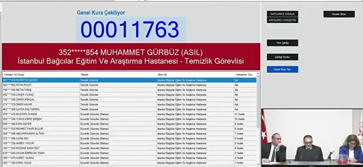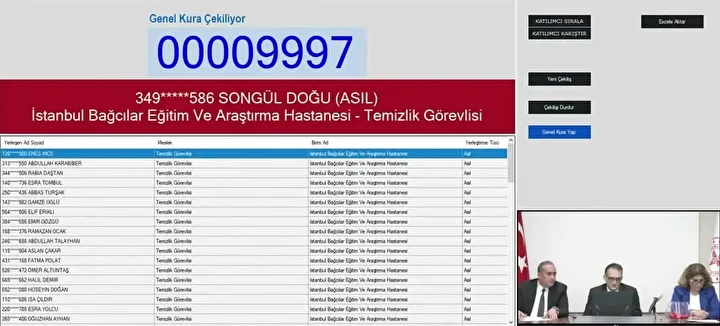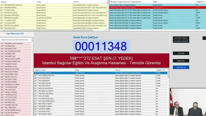Sağlık Bakanlığının Sözleşmeli Sağlık personeli başvuru sonuçlarının açıklanmasıyla birlikte gözler İŞKUR işçi alımı kura tarihine çevrildi. Sağlık Bakanlığı 2 bin 764 işçi alımı başvuruları 13 Ekim'de sona ererken, gözler kura çekilişine çevrildi. Sağlık Bakanlığı sürekli işçi alımı kuraları noter huzurunda canlı olarak çekildi. Asil ve yedek aday olmak üzere listeler duyuruldu. Sağlık Bakanlığı işçi alımı İstanbul kura çekiliş sonuçları belli oldu. İşte Sağlık Bakanlığı İstanbul işçi alımı temizlik ve güvenlik görevlisi kura sonuçları kazananların isim listesi sorgulama ekranı.