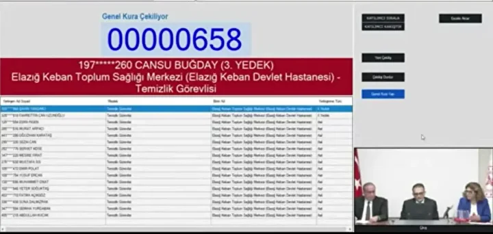 Sağlık Bakanlığı, bünyesinde istihdam etmek üzere 2 bin 764 işçi alamı için beklenen kura çekilişi yapıldı. Temizlik görevlisi, güvenlik görevlisi, klinik destek elemanı gibi çeşitli branşlarda yapılacak alımlarda İŞKUR'a başvuran kişiler arasında kura çekilişi gerçekleştirildi. İşte Sağlık Bakanlığı Elazığ işçi alımı kura çekiliş sonuçları asil ve yedek isim listesi.