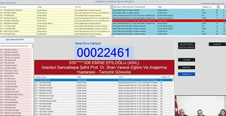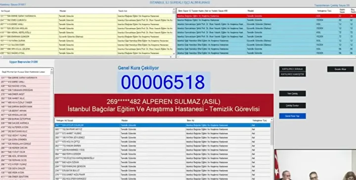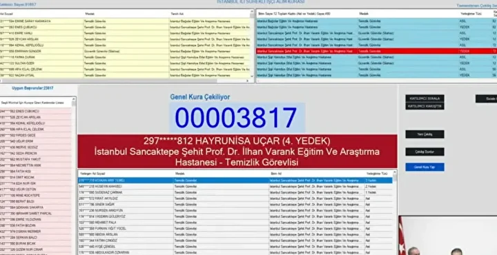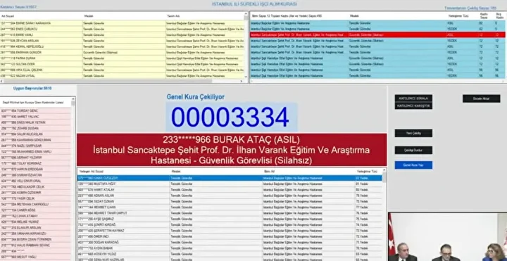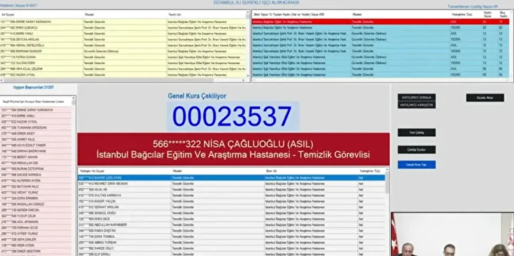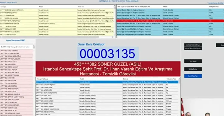 Binlerce adayın merakla beklediği Sağlık Bakanlığı işçi alımı kura çekimi başladı. 12 Kasım Çarşamba günü saat 10.30’da başlayan kura, noter huzurunda ve canlı yayın eşliğinde sürüyor. Bakanlık bünyesinde görev yapacak 2 bin 764 işçi alımı kapsamında asil ve yedek isim listeleri, kura bitiminde iscisonuc.saglik.gov.tr adresinden erişime açılacak. İşte, Sağlık Bakanlığı kura çekimi canlı yayın bağlantısı ve sonuç sorgulama ekranı...