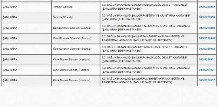 4. Bakanlığımızın ihtiyaç duyduğu Klinik Destek Elemanı (Hastane), Güvenlik Görevlisi (Silahsız) ve Temizlik Görevlisi mesleklerinde alımların il düzeyinde karşılanması yoluna gidilecektir. Başvurularda kişilerin Adrese Dayalı Nüfus Kayıt Sisteminde kayıtlı olan adresleri dikkate alınacaktır.