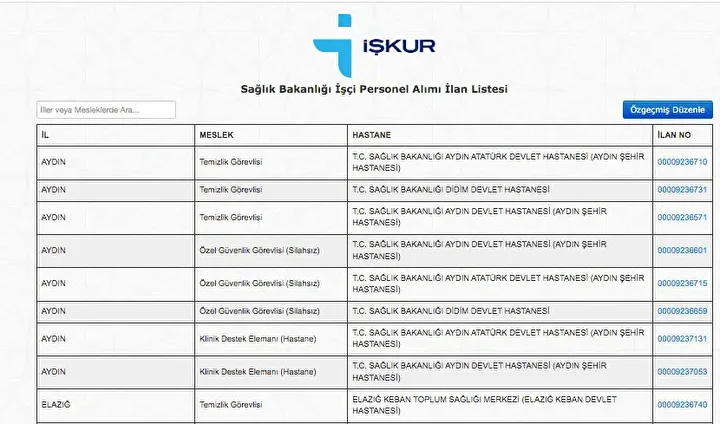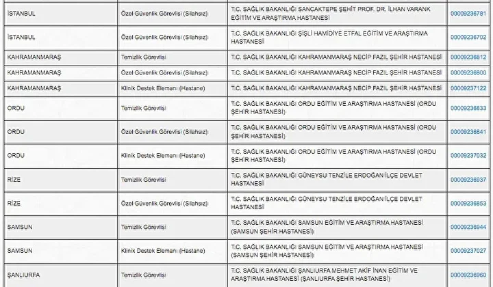 Sağlık Bakanlığı İŞKUR işçi alımı hangi branşta olacak?