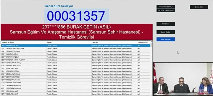 Sağlık Bakanlığı'nın İŞKUR aracılığıyla gerçekleştireceği 2 bin 764 sürekli işçi alımı için kura çekilişi yapıldı. Kura çekimi sonucunda asil ve yedek isim listesi belli oldu. Sağlık Bakanlığı işçi alımı Samsun kura sonuçları da netleşti. İşte İŞKUR Samsun asil ve yedek isim listesi.