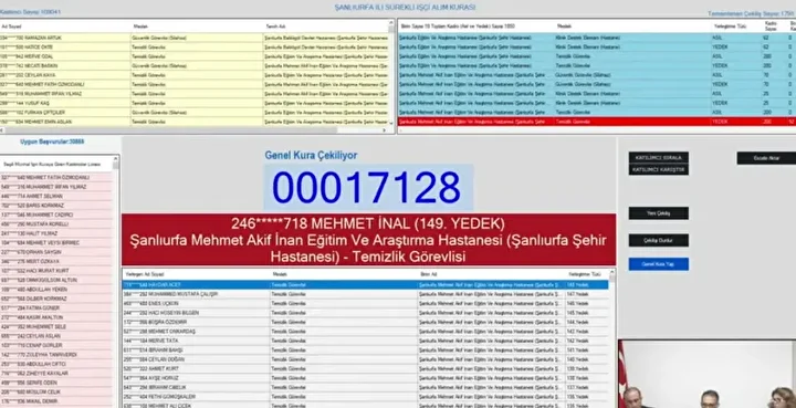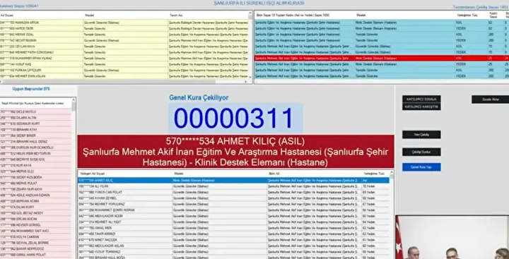 Binlerce adayın gözü bugün Sağlık Bakanlığı’nda! 2 bin 764 sürekli işçi alımı için kura çekimi başladı. Sağlık Bakanlığı Bilkent Yerleşkesi’nde noter huzurunda yapılan çekiliş, iller bazında sırayla devam ediyor. Asil ve yedek adayların kimler olacağı ise canlı yayında belli olacak.