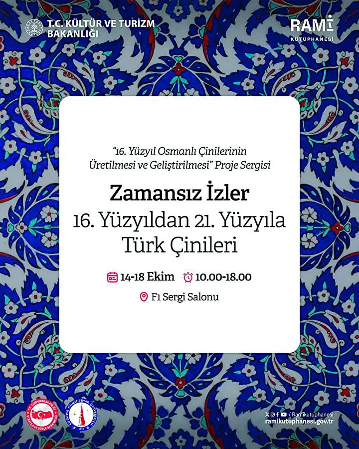 Rami Kütüphanesi ziyaretçilerini zamansız bir yolculuğa davet ediyor. Türk çinilerinin yüzyıllara yayılan büyüleyici serüvenini “Zamansız İzler” sergisiyle ilgililere sunuyor. 14 Ekim’de ziyarete açılacak sergi, 18 Ekim tarihine kadar ücretsiz olarak görülebilir.