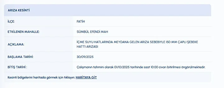 Kesinti yaşanacak bölgeler ve suların geri geleceği saatler, İSKİ’nin resmi internet sitesi üzerinden düzenli olarak güncelleniyor. Vatandaşlar, bulundukları ilçeyi seçerek güncel bilgilere ulaşabiliyor.