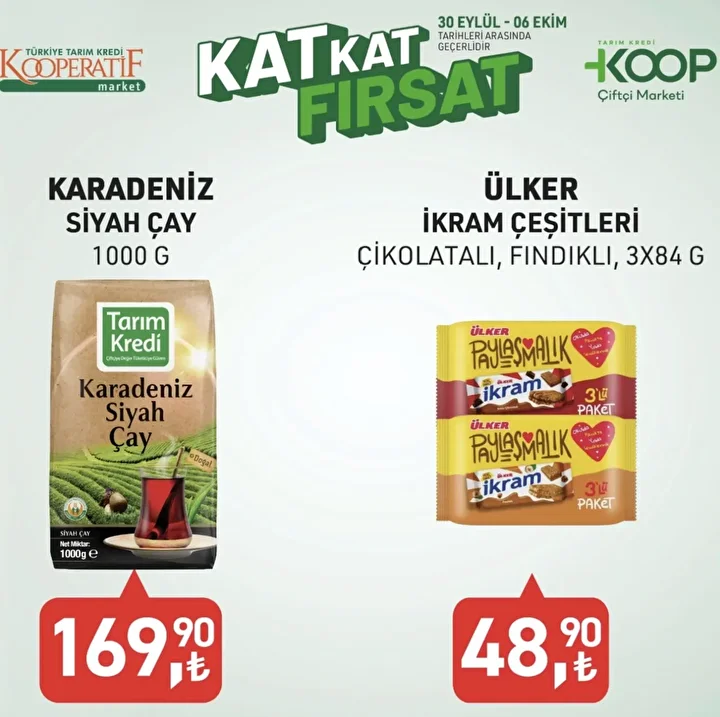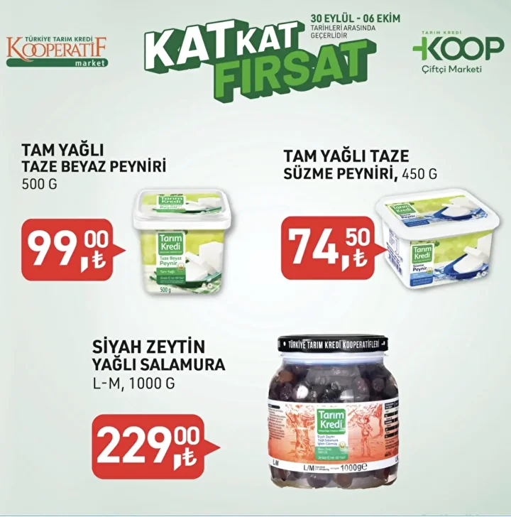 Tarım Kredi Market indirim günleri başladı. Tarım Kredi Kooperatifi Fırsat Dolu Hafta Sonu kataloğu satışa sunuldu. Bu hafta cuma gününden pazar gününe kadar geçerli olacak Tarım Kredi Market fırsatları müşterileri ile buluştu. Ekim ayının ilk KOOP Market broşüründe toplamda 42 ürün kampanyaya dahil edildi. Ekim ayı 2025 Tarım Kredi Market aktüel ürünler kataloğu ve fiyat listesi.