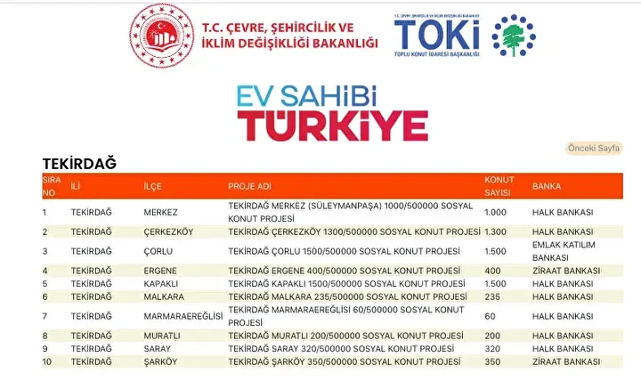 Tekirdağ’da hangi ilçede kaç konut yapılacak?
