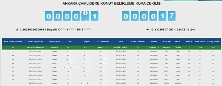 TOKİ tarafından 250 bin Sosyal Konut Projesi kapsamında başvuru toplanan Ankara Çamlıdere sosyal konut projesinde hak sahipleri için 2+1 ve 3+1 tipi 113 adet konut için konut belirleme kurası gerçekleştirildi. İşte TOKİ Ankara Çamlıdere konut belirleme kura sonuçları isim listesi.