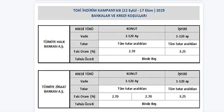 TOKİ yüzde 25 indirim kampanyası konut kredisi hangi banka veriyor?