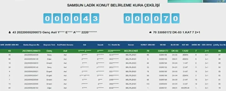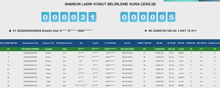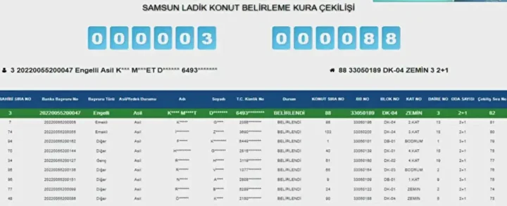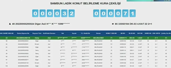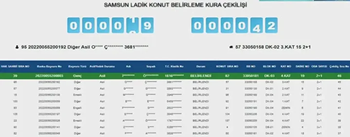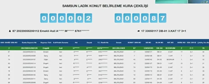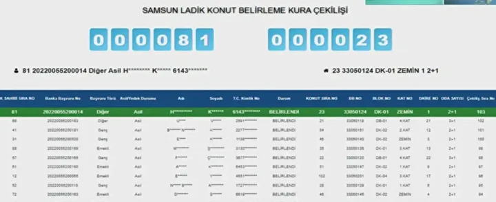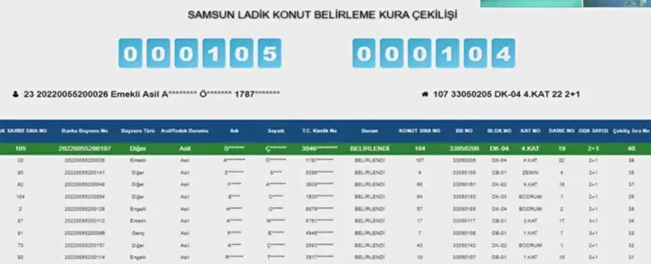 Toplu Konut İdaresi Başkanlığı (TOKİ) tarafından yürütülen Samsun Ladik Şehreküstü Mahallesi konut projesi için 2+1 85 ve 3+1 22 adet konutun hak sahiplerini belirleyecek olan kura çekimi bugün gerçekleştirildi. Kura çekiminin ardından gözler isim listesine çevrildi. Peki TOKİ Samsun Ladik kura sonuçları açıklandı mı? İşte Samsun Ladik Şehreküstü Mahallesi TOKİ konut belirleme kura sonuçları isim listesi.