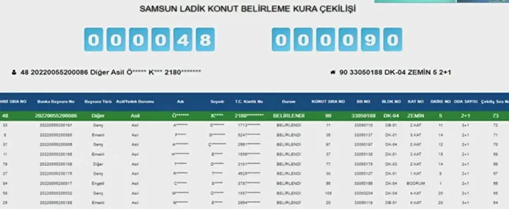 TOKİ tarafından 250 bin sosyal konut projesi kapsamında başvurusu toplanan Samsun Ladik TOKİ konutları için 2+1 ve 3+1 dairelerin kura çekimi bugün saat 11.00'da yapıldı. Peki TOKİ Ladik kura sonuçları açıklandı mı? Ladik Şehreküstü Mahallesi TOKİ isim listesi yayınlandı mı?