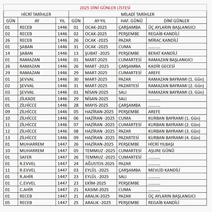 2025 yılı ise Hicri takvimin miladi takvime göre kayması nedeniyle nadir görülen bir olaya sahne olacak ve Üç Aylar aynı yıl içinde iki kez idrak edilecek.
