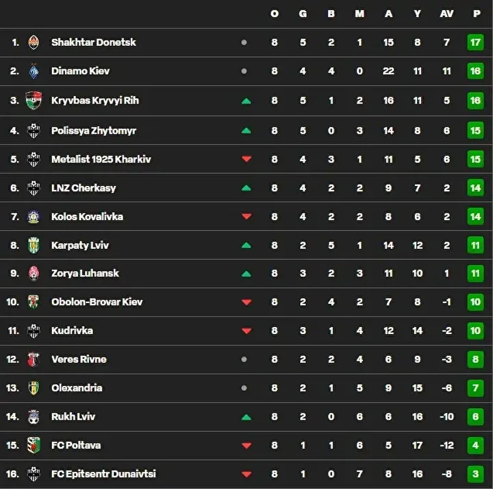 Bu sonucun ardından Shakhtar Doentsk zirvede 17 puanla kaldı. LZN Cherkasy ise puanını 14'e yükseltti.