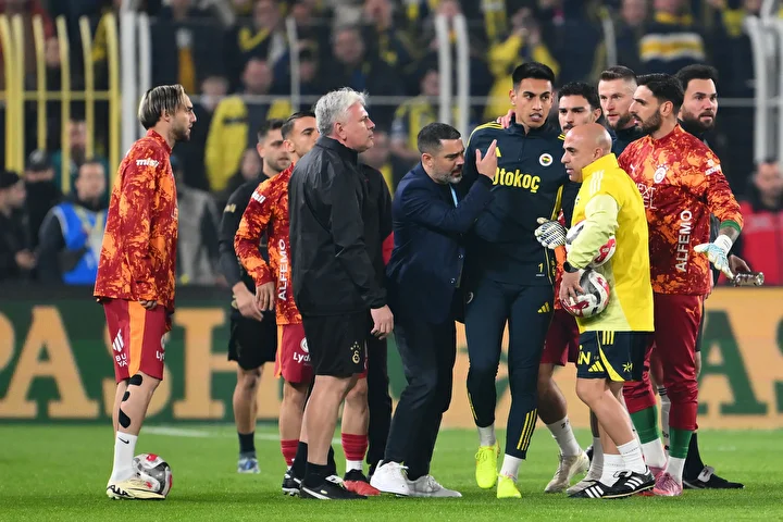 Fenerbahçe-Galatasaray derbisi başlamadan önce iki takım arasında gerginlik yaşandı. Isınma sırasında futbolcular ve teknik ekipler karşı karşıya geldi. Yaşananların ardından iki ismin ihraç edildiği öğrenildi.