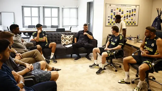 Başkan Saran ile Yönetim Kurulu Üyesi Ertan Torunoğulları, Fenerbahçe Can Bartu Tesisleri’nde futbol A takımı futbolcularıyla bir araya geldi.