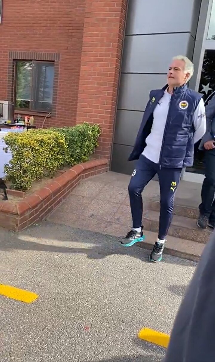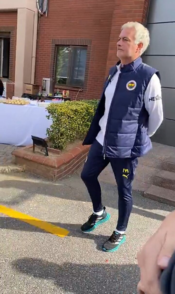 Fenerbahçe'nin yeni takım otobüsünün tanıtımı için düzenlenen etkinlikte, Mourinho'nun sekerek yürüdüğü görüldü.