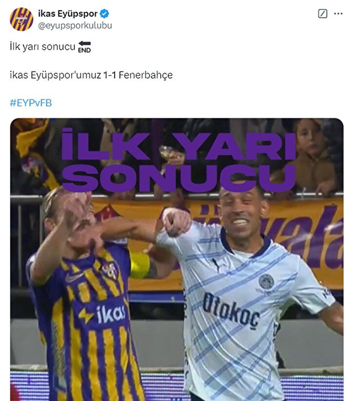 Eyüpspor ilk yarının sona ermesinin ardından sosyal medya hesabından pozisyonu paylaşarak tepki gösterdi.