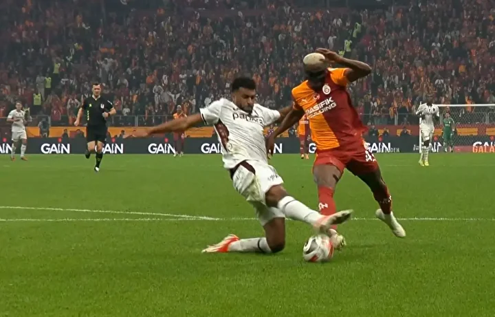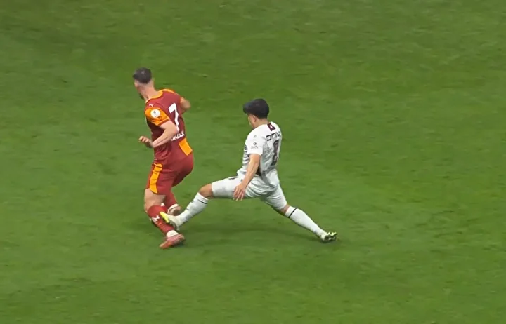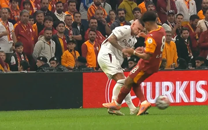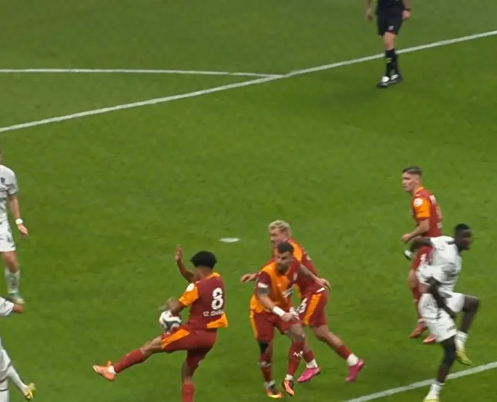 "Burada topa Trabzonsporlu oyuncu müdahale ediyor. Daha sonra top Osimhen'e çarpıp dışarı gidiyor. Hakemin kararı doğru. El işareti penaltı gibi anlaşıldı ama daha sonra kendisi de oyunculara durumu anlattı."