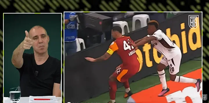 "Top oyun alanı dışındayken, Pina rakibini itiyor. Hakemin es geçtiği sarı kartlardan birisi. En az 6-7 pozisyonda sarı kart vermedi."