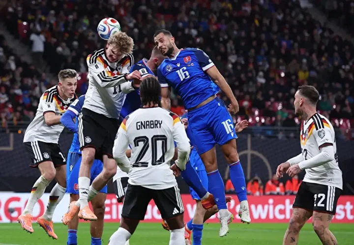 Almanya Milli Takımı, 2026 Dünya Kupası Avrupa Elemeleri A Grubu’ndaki son maçında Slovakya karşısında sahadan 6-0’lık net bir galibiyetle ayrıldı. Elemelere Slovakya yenilgisiyle başlayan Joachim Nagelsmann’ın ekibi, son haftada sergilediği üstün oyunla grubu 15 puanla lider bitirdi ve doğrudan finallere gitme hakkını elde etti.