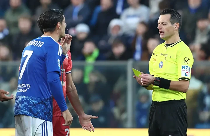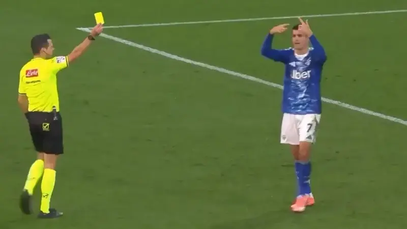 Maçın hakemi bu pozisyonda Morata'ya sarı kartını gösterdi. Sinirlenen İspanyol golcünün kaptanlık pazubandını çıkarıp yere attı.