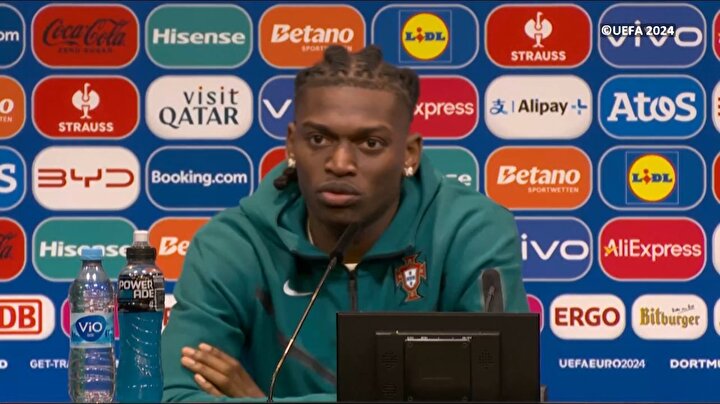 Portekiz Milli Takım Teknik Direktörü Roberto Martinez ile futbolculardan Rafael Leao, EURO 2024 F Grubu'nda oynanacak Türkiye maçı öncesinde basın toplantısında soruları yanıtladı. Leao, Türk taraftarlarının oluşturacağı atmosfer hakkında dikkat çeken açıklamalarda bulundu.